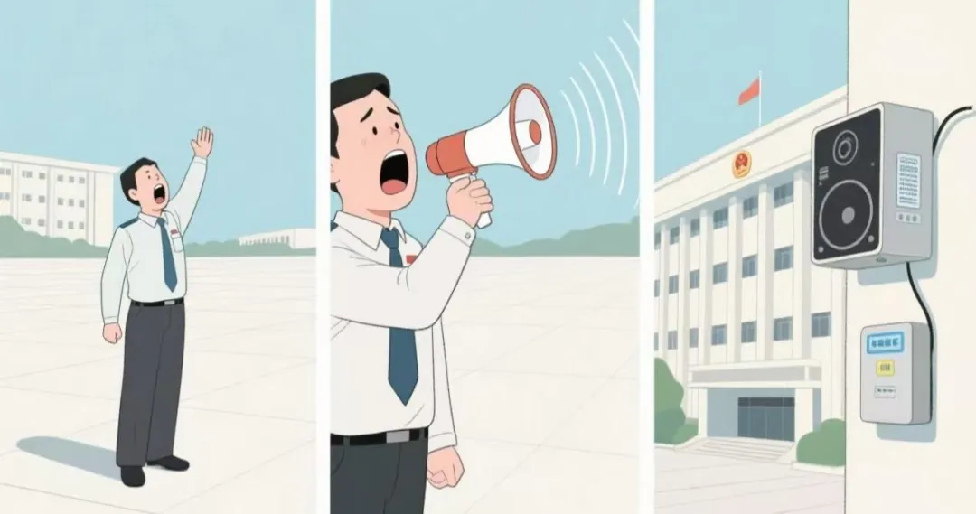 第三张图片中已经没有人了,而是只有音响和喇叭在工作,这对比第二张图片明显工作方法更加先进,工作效率更高,同时也解放了工作人员的时间,这就是技术的升级,是创新创造的结果。所谓,科技兴则民族兴,科技强则国家强。不断创新科学技术,不仅是破解发展难题的钥匙,更是驱动现代化建设的核心力量,只有坚持创新驱动,才能将科技的关键变量转化为高质量发展的最大增量,为中国式现代化注入不竭动力。作为一名领导干部,我们应重视培育新质生产力,推动产业升级,让科技进步推动经济发展,提升人民生活水平。