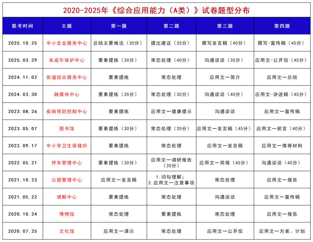 《综合应用能力(A 类)》旨在测查应试人员综合运用相关知识和技能发现问题、分析问题、解决问题的能力。试卷以主观性试题为主,由背景材料和任务组成。任务主要涉及事业单位管理岗位典型的工作,如观点归纳、资料分类、草拟信函、应急处理、联络通知等。一般是120分钟,4道题,150分。