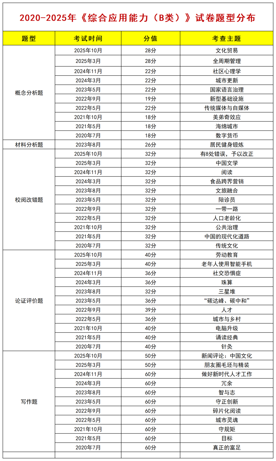《综合应用能力(B类)》是针对事业单位人文社科类专 业技术岗位公开招聘工作人员而设置的考试科目,旨在测查应试人员综合运用相关知识和技能发现问题、分析问题、解决问题的能力。